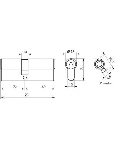 Profil européen laiton. Mécanisme à 7 à 16 goupilles.Protection contre l'effraction de la partie saillante ducylindre (anti-snap). Panneton anti arrachement. 3 clésplates réversibles laiton nickelé avec carte de propriété.Option : Protection contre le perçage par aiguille + 1ère goupille + poussoir en acier trempé.