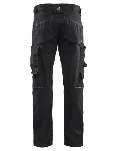 Secteur d'activités : Artisan / Industrie. Stretch 2 directions, Stretch 4 directions. Genoux préformés, coupe classique. Poches genouillères stretch renforcées en Cordura®. Eléments réfléchissants sur les jambes. Normes : EN 14404. Matière : 63% polyester, 33% coton, 4% élastoléfine, twill, stretch, 260 g/m². Disponible du 38 au 58 en coupe standard, du 40 au 50 en coupe jambes longues et du 38 au 58 en coupe jambes courtes. Existe en 3 couleurs.